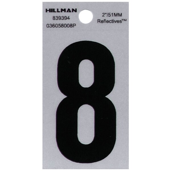 HILLMAN 2 in. Reflective Black Vinyl Self-Adhesive Number 8 1 pc, PK6