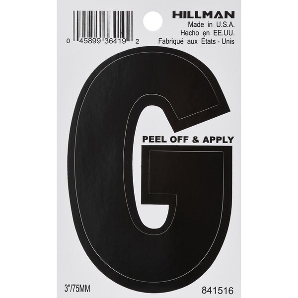 HILLMAN 3 in. Black Vinyl Self-Adhesive Letter G 1 pc, PK6