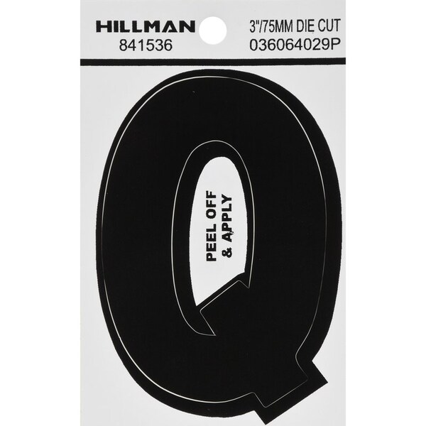 HILLMAN 3 in. Black Vinyl Self-Adhesive Letter Q 1 pc, PK6
