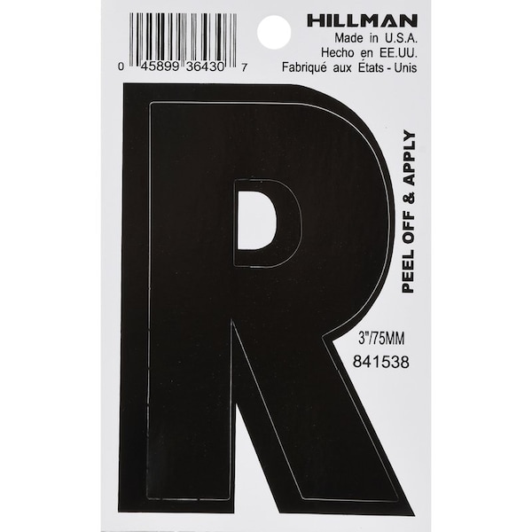 Simple and classic, this Hillman adhesive house letter R black (3 in.) is perfect for use on a mailbox or your home. The sturdy construction stands up to weather. These house numbers are a great way to help make your address more visible to visitors and emergency workers alike.