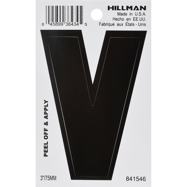 HILLMAN 3 in. Black Vinyl Self-Adhesive Letter V 1 pc, PK6