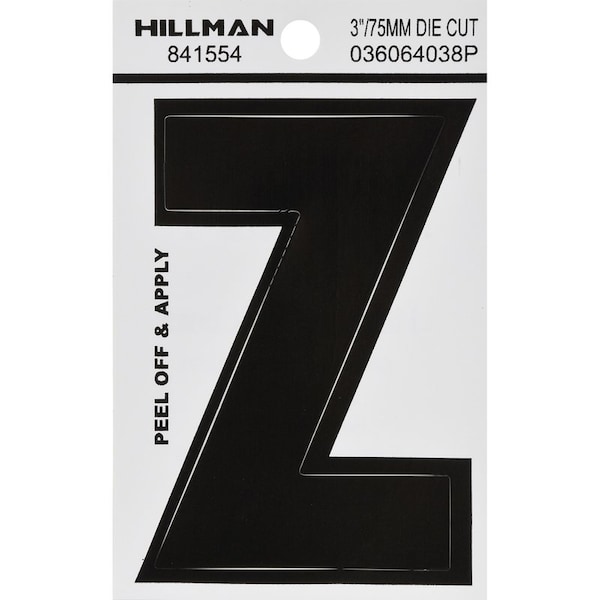 HILLMAN 3 in. Black Vinyl Self-Adhesive Letter Z 1 pc, PK6