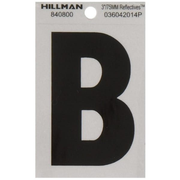 Simple and classic, this Hillman adhesive letter b black and silver reflective (3 in.) is perfect for use on a mailbox or your home. The sturdy construction stands up to weather. These house numbers are a great way to help make your address more visible to visitors and emergency workers alike.