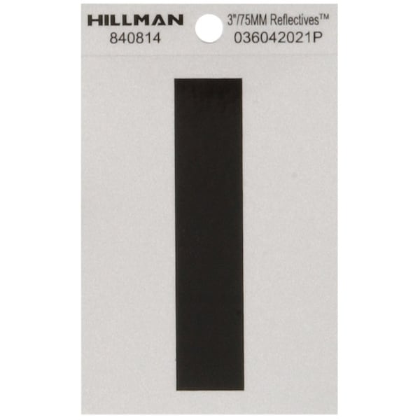 HILLMAN 3 in. Reflective Black Vinyl Self-Adhesive Letter I 1 pc, PK6
