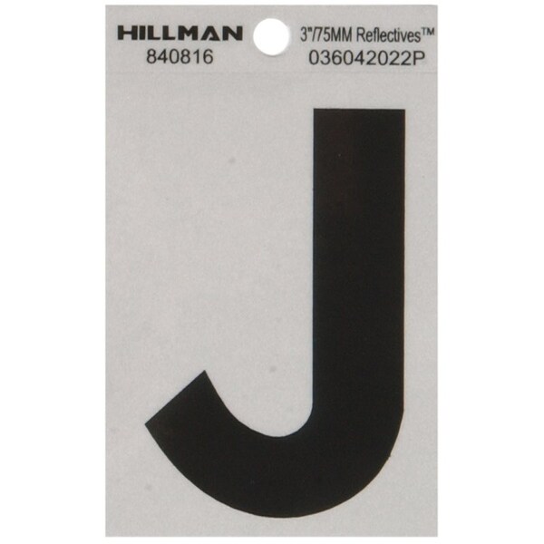 HILLMAN 3 in. Reflective Black Vinyl Self-Adhesive Letter J 1 pc, PK6