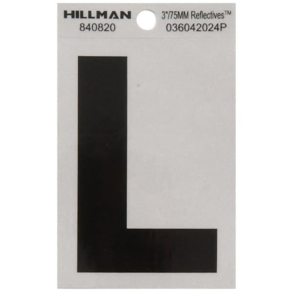 HILLMAN 3 in. Reflective Black Vinyl Self-Adhesive Letter L 1 pc, PK6