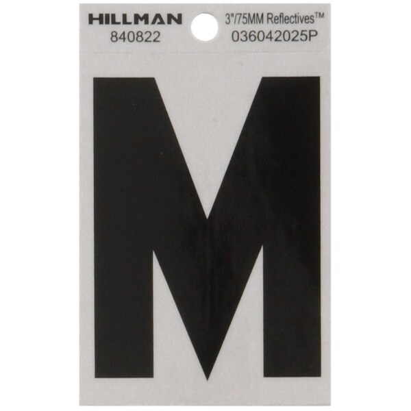 HILLMAN 3 in. Reflective Black Vinyl Self-Adhesive Letter M 1 pc, PK6