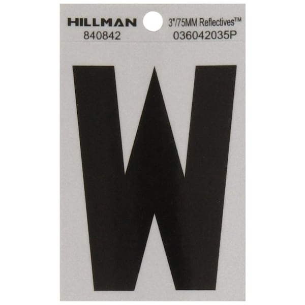 Simple and classic, this Hillman adhesive letter w black and silver reflective (3 in.) is perfect for use on a mailbox or your home. The sturdy construction stands up to weather. These house numbers are a great way to help make your address more visible to visitors and emergency workers alike.
