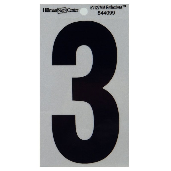 HILLMAN 5 in. Reflective Black Vinyl Self-Adhesive Number 3 1 pc, PK6
