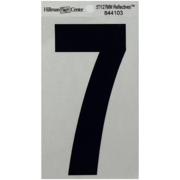 HILLMAN 5 in. Reflective Black Vinyl Self-Adhesive Number 7 1 pc, PK6