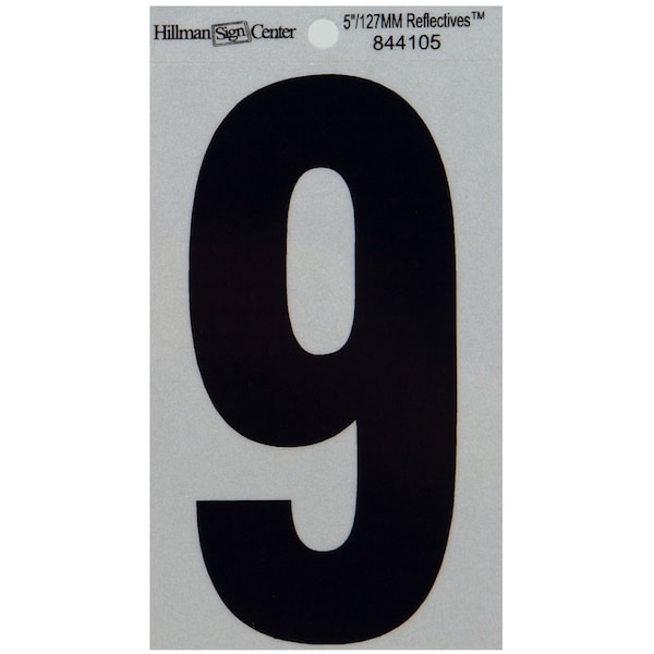 HILLMAN 5 in. Reflective Black Vinyl Self-Adhesive Number 9 1 pc, PK6