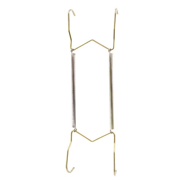 Hang your favourite decorative or collector plate with this adjustable plate holder. The tips are padded with clear soft rubber to protect plate edges. Spring tensioned hangers expand to hold plates from 5-1/2 in to 8 in diameter.