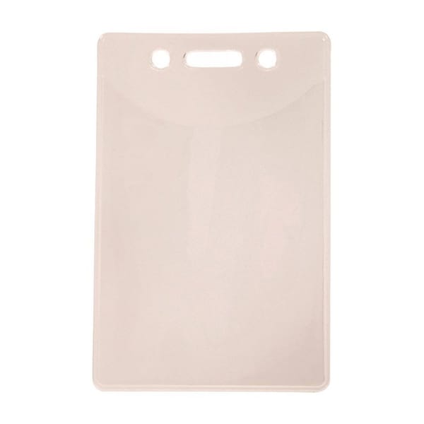 Keep your work or school ID badge safe with this plastic badge sleeve. Meant for vertical hanging, it can be used with most badge retrievers or lanyards. Two sleeves per pack. *