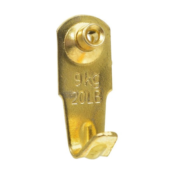 This brass plated safety hanger with ensure maximum hold with built in clip. Elite Safety Hangers available in holding up to 20lb, 30lbs, and 75lbs. Finish your gallery with a safe and classic look. Great for drywall and plaster walls. *