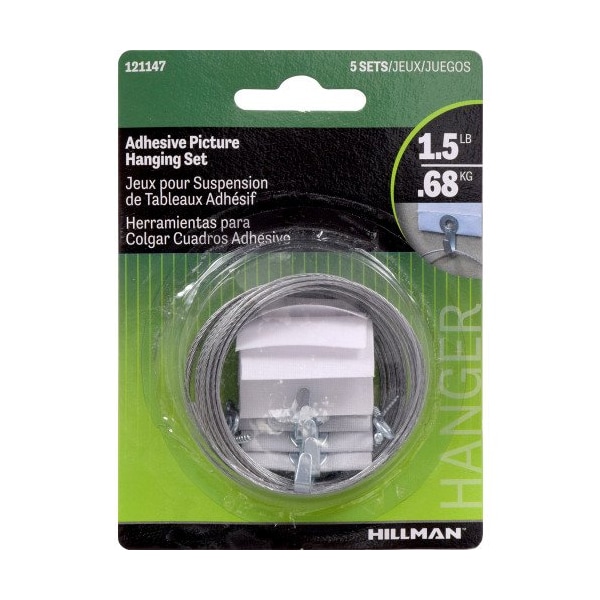 HillmanTM Adhesive Hangers are great for hanging lightweight items such as posters. Holds up to 1.5lbs. Use with hook facing out. Simply, moisten wall and place hanger in desired location. Let set for 5 minutes. Designed to minimize damage to walls. *