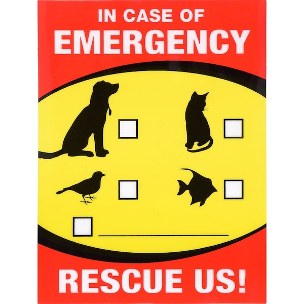 This in case of emergency pet rescue sign (4 x 6 in.) informs emergency workers that there are animals in the car in case of emergency. Prepare for an emergency and keep your animals safe. With an eye-catching design, this sign is sure to convey your message clearly.