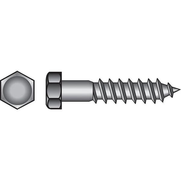 Lag Screw, 1/4 in, 3/2 in, Stainless Steel, Hex Hex Drive