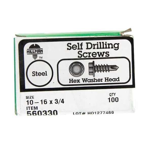 No. 10-16 X 3/4 in. L Hex Hex Washer Head Self-Drilling Screws, 100PK