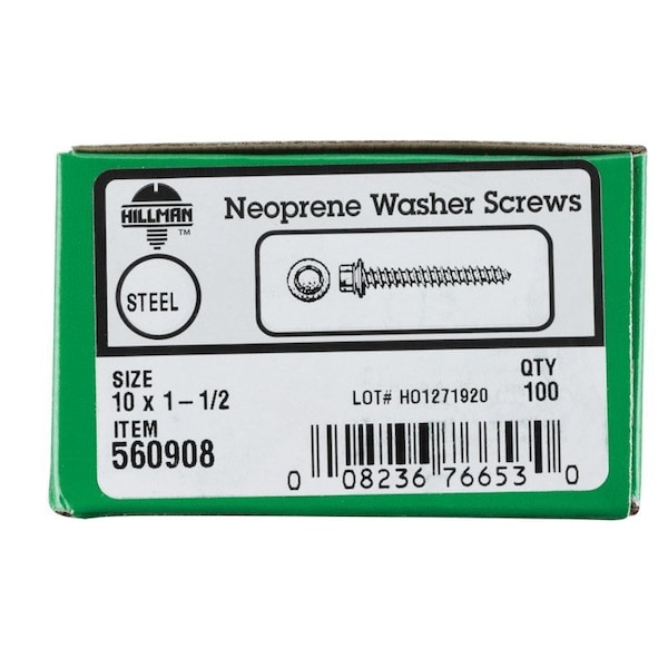 No. 10 Ga. X 1-1/2 in. L Hex Hex Head Screws w/Washers, 100PK