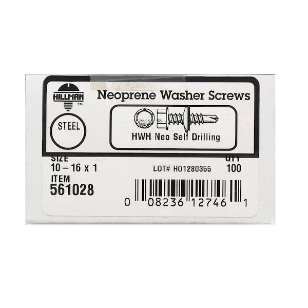 No. 10 Ga. X 1 in. L Hex Hex Washer Head Self-Drilling Screws, 100PK