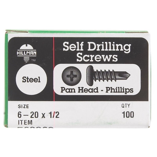 No. 6-20 X 1/2 in. L Phillips Pan Head Self-Drilling Screws, 100PK
