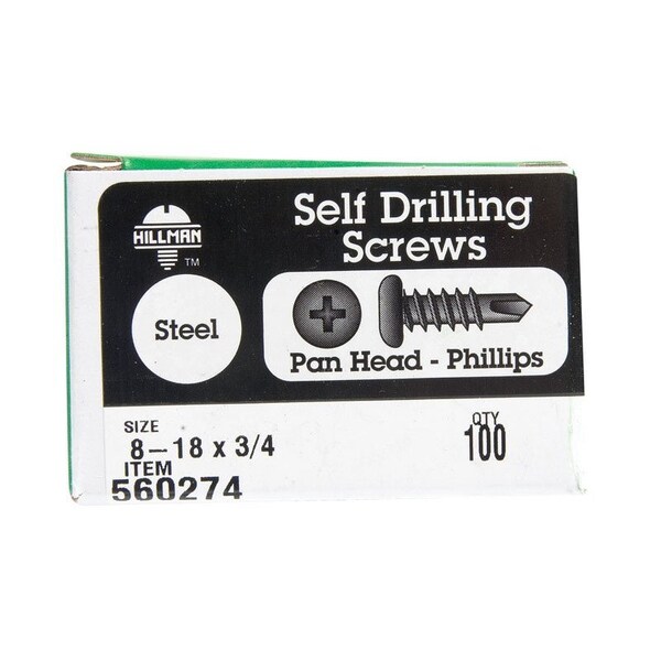 No. 8-18 X 3/4 in. L Phillips Pan Head Self-Drilling Screws, 100PK
