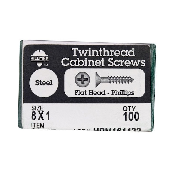 No. 8 X 1 in. L Phillips Black Phosphate Twin Thread Cabinet Screws, 100PK
