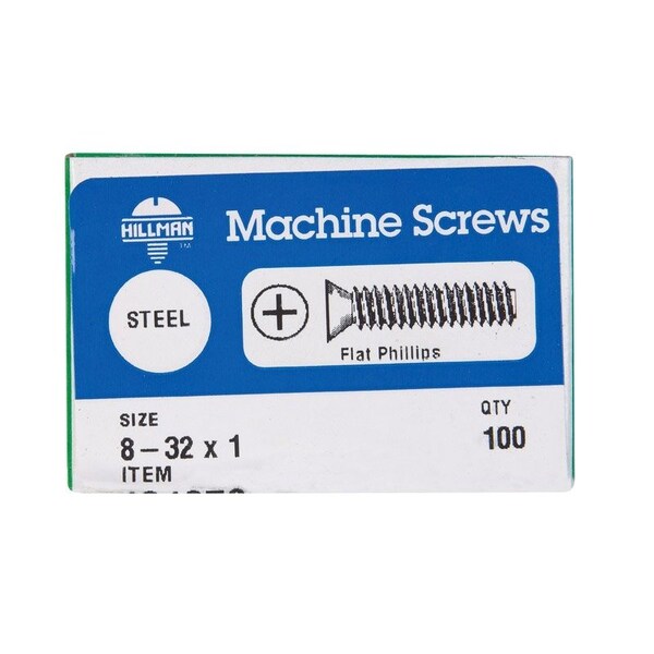 Zinc, flat-head, Phillips-drive machine screws have a machine-cut thread throughout the length of their shank. Fasten with a Phillips screwdriver to reduce risk of over-tightening and protect the screw and fastened material. If nuts are needed, use with nuts of the same finish and threading for proper fit. Use for any indoor or outdoor projects. #8-32 coarse thread x 1'' length. *