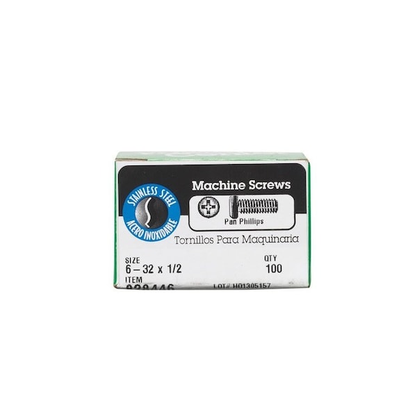 18-8 stainless steel, pan-head, Phillips-drive machine screws have a machine-cut thread throughout the length of their shank. Fasten with a Phillips screwdriver to reduce risk of over-tightening and protect the screw and fastened material. If nuts are needed, use with nuts of the same finish and threading for proper fit. Use for any indoor or outdoor projects. #6-32 coarse thread x 1/2'' length. *