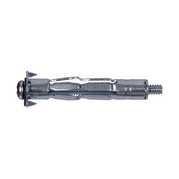 Hollow wall anchors, also known as molly bolts are used with drywall. Use to securely fasten mirrors, pictures, cabinets, and more to hollow walls. This anchor is an expandable sleeve that slides into pre-drilled hole in the wall. Once the anchor is installed, the screw can be removed and items can be changed without disrupting the anchor. Use for medium duty applications. *