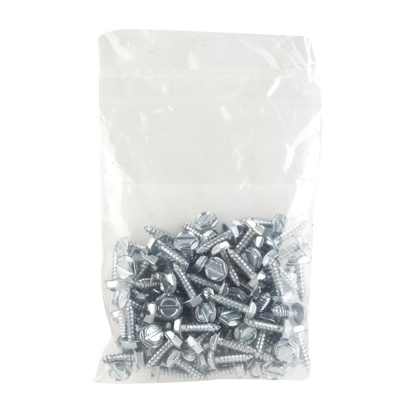 Sheet Metal Screw, Flange Hex Head Slotted Drive, 100 PK