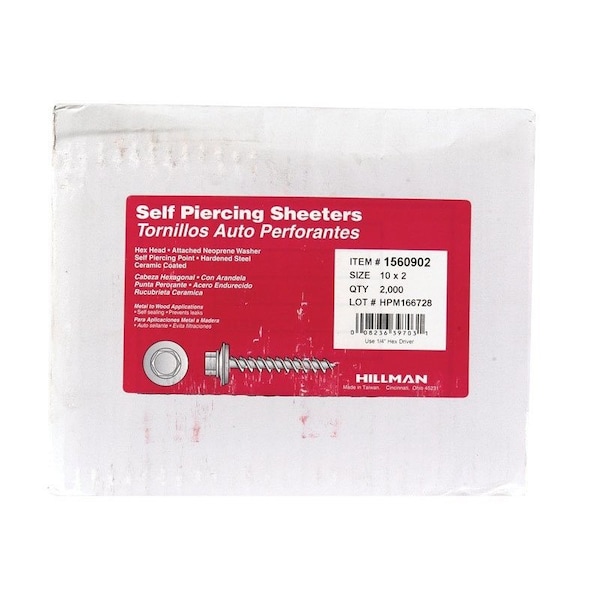 Sheet Metal Screw, Flange Hex Head Slotted Drive, 2000 PK