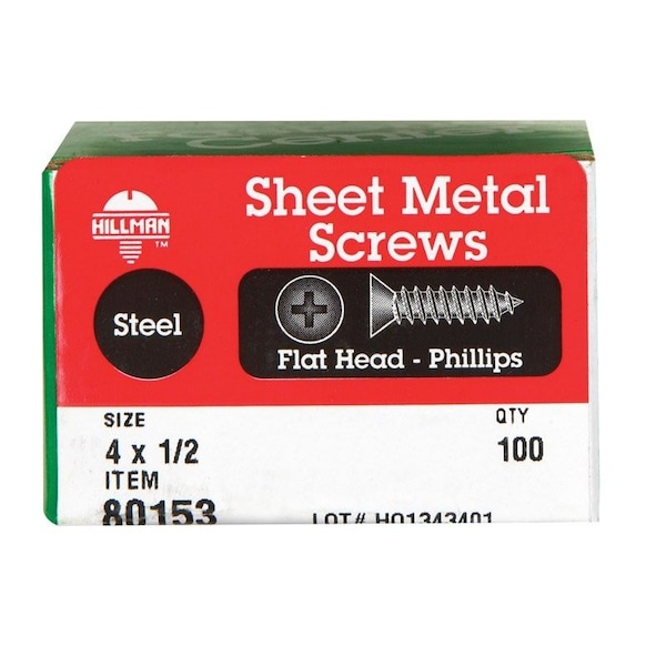 Sheet Metal Screw, Flat Head Phillips Drive, 100 PK