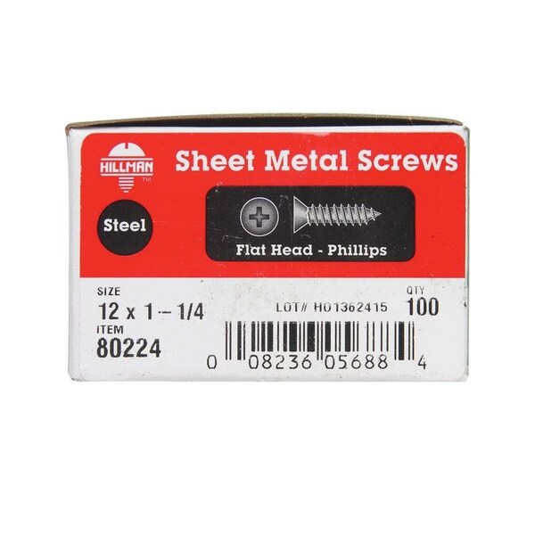 Sheet Metal Screw, Flat Head Phillips Drive, 100 PK