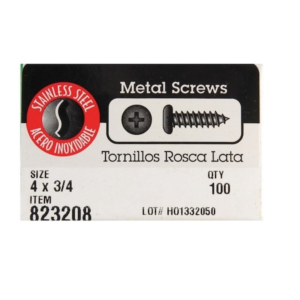 Sheet Metal Screw, Pan Head Phillips Drive, 100 PK