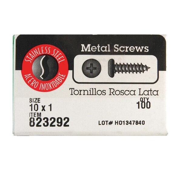 Sheet Metal Screw, Pan Head Phillips Drive, 100 PK