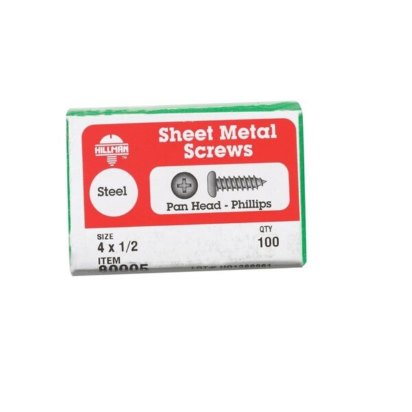 Sheet Metal Screw, Pan Head Phillips Drive, 100 PK