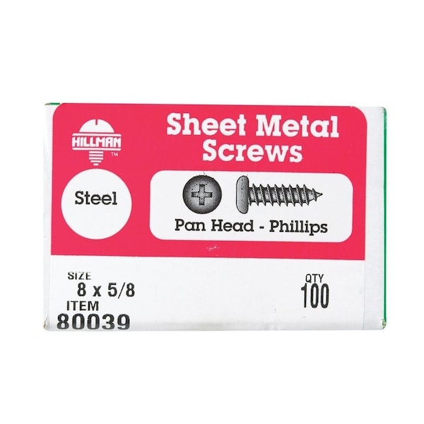 Sheet Metal Screw, Pan Head Phillips Drive, 100 PK