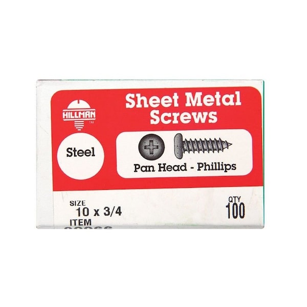 Sheet Metal Screw, Pan Head Phillips Drive, 100 PK
