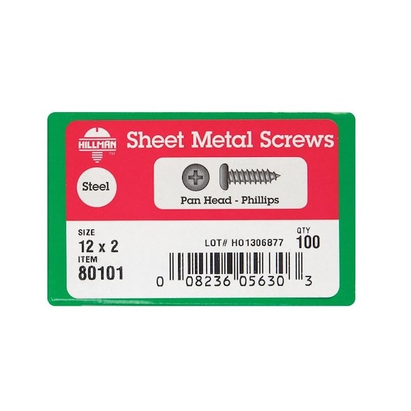 Sheet Metal Screw, Pan Head Phillips Drive, 100 PK