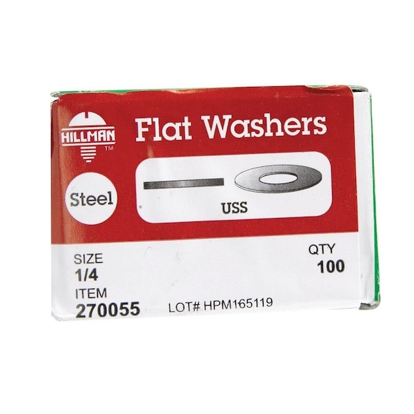 Zinc-Plated Steel 1/4 in. USS Flat Washer, 100PK