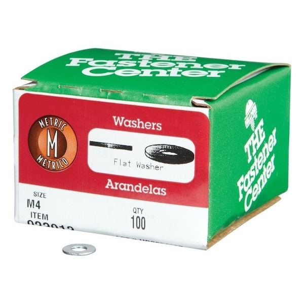 Zinc-Plated Steel M4 mm Flat Washer, 100PK