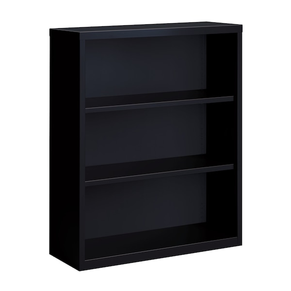 Bookcase, Product Type Bookcase, Material Steel, Number of Dividers 0, Overall Height 42 in, Overall Depth 13 in, Overall Width 34 1/2 in, Caster Type Not Applicable, Color Black, Back Style Closed, Number of Shelves 3, Weight Capacity 200 lb, Shelf Adjustment Increment 1 in, Standards ANSI/BIFMA, Greenguard Gold Certified, TAA Compliant, Shelf Capacity 200 lb, Assembly Assembled