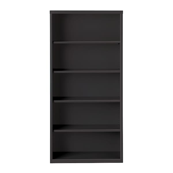 Bookcase, Product Type Bookcase, Material Steel, Number of Dividers 0, Overall Height 72 in, Overall Depth 13 in, Overall Width 34 1/2 in, Caster Type Not Applicable, Color Black, Back Style Closed, Number of Shelves 5, Weight Capacity 200 lb, Shelf Adjustment Increment 1 in, Standards ANSI/BIFMA, Greenguard Gold Certified, TAA Compliant, Shelf Capacity 200 lb, Assembly Assembled