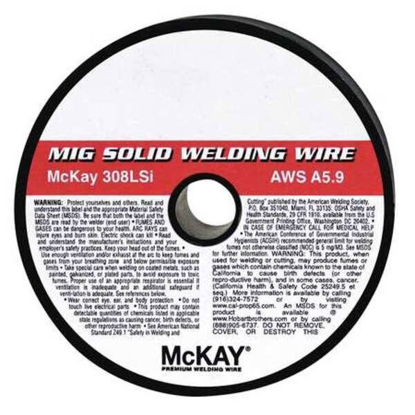 Mig Welding Wire, AWS Classification ER308Si, ER308LSi, Material Stainless Steel, Process MIG Welding (GMAW), Wire Diameter 0.03 in, Tensile Strength (As Welded) 86 ksi, Yield Strength (Minimum Required) 55 ksi, Yield Strength (As Welded) 55 ksi, Spool Type Plastic Spool, Series ER308LSi, Weight 2 lb, For Material Type Stainless Steel to Stainless Steel, For Material Grade 304L, 304LN, 308L, Welding Current Designation DCEP
