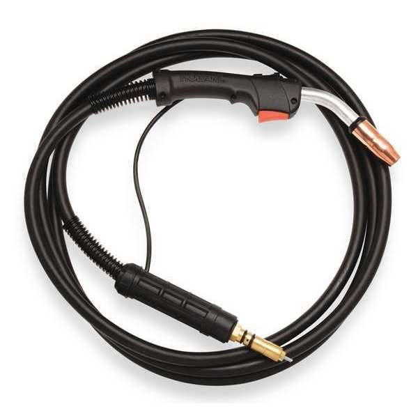 MIG Gun, MIG Gun Type Air-Cooled, Cooling Method Air-Cooled, Series H200L4, Maximum Current 200 A, Duty Cycle 60 Percent, For Gas Type CO2 (Carbon Dioxide), Mixed Gas, Maximum Wire Diameter 0.035 in, Cable Length 15 ft, For Rear Connection Type Hobart-Compatible, Handle Type Straight, Trigger Type Standard, For Wire Type Flux-Cored, Solid, Model 239173, Tip Series M-Series, Welding Processes Flux-Cored Welding (FCAW), MIG Welding (GMAW), Application MIG Welding