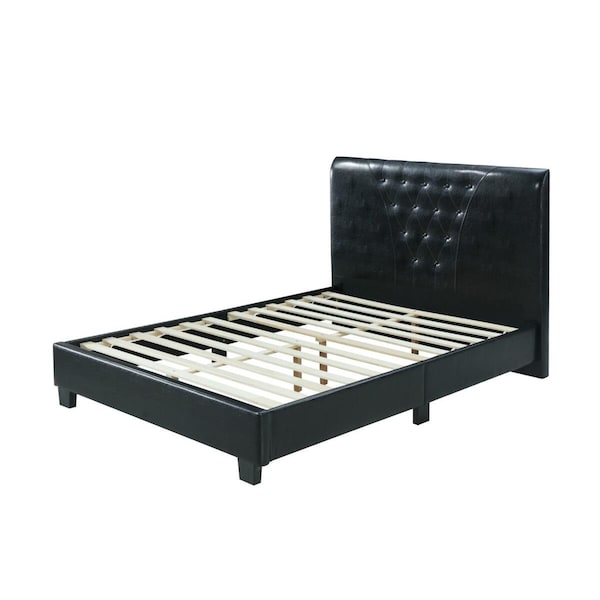 Full Size Platform Bed with Tufted Upholstered Headboard, Black