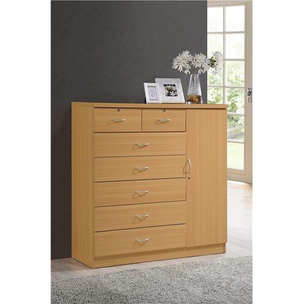 Hodedah Hi71Dr Beech 7 Drawer Jumbo Chest with Additional Door