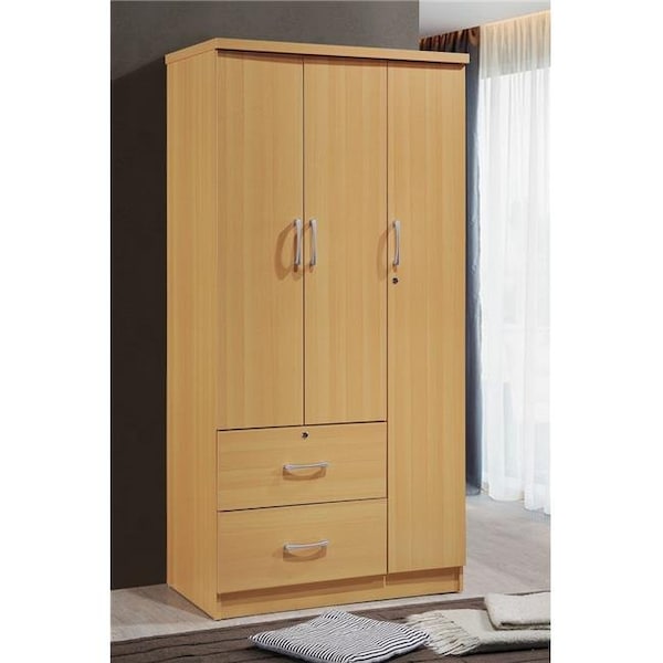 Hodedah HID8020 BEECH 3-Door Armoire with 2-Drawers; 3-Shelves - Beech