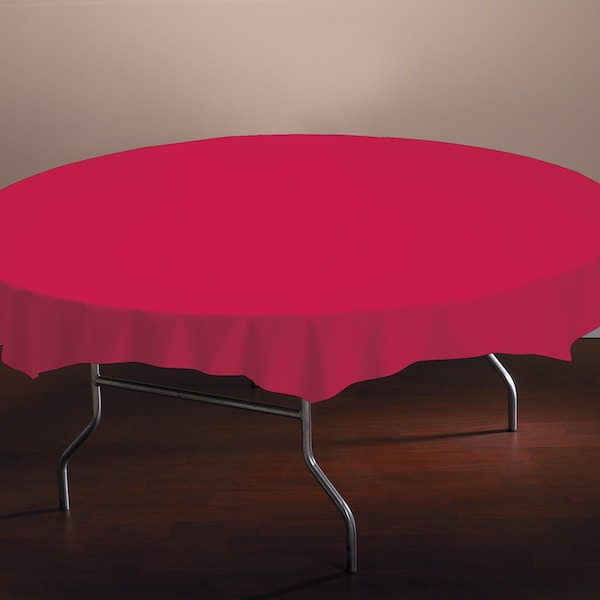 82" Red Plastic Octy-Round Tablecloths, PK12